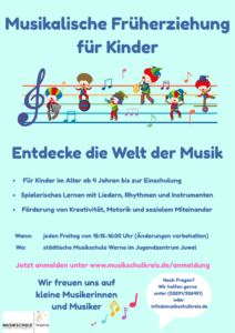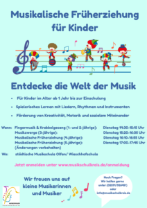 Möchten Sie Ihrem Kind die Welt der Musik näherbringen? Unser Kurs „Musikalische Früherziehung“ bietet Kindern im Alter von 4 Jahren bis zur